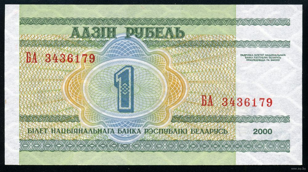 Беларусь. 1 рубль образца 2000 года. Серия БА. UNC