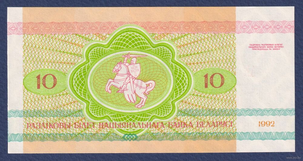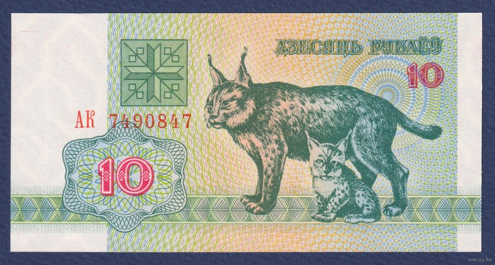 Беларусь, 10 рублей 1992 г, P-5 (серия АК, рысь), UNC
