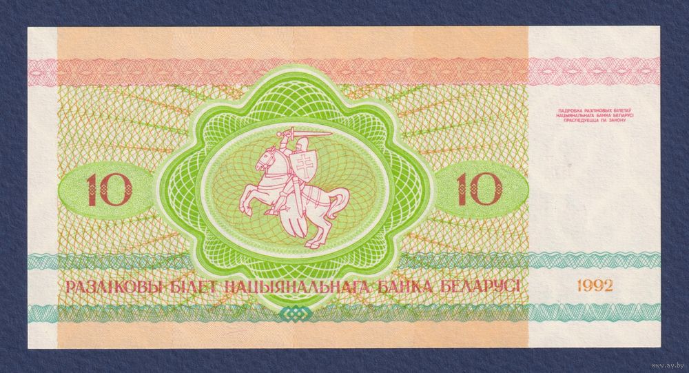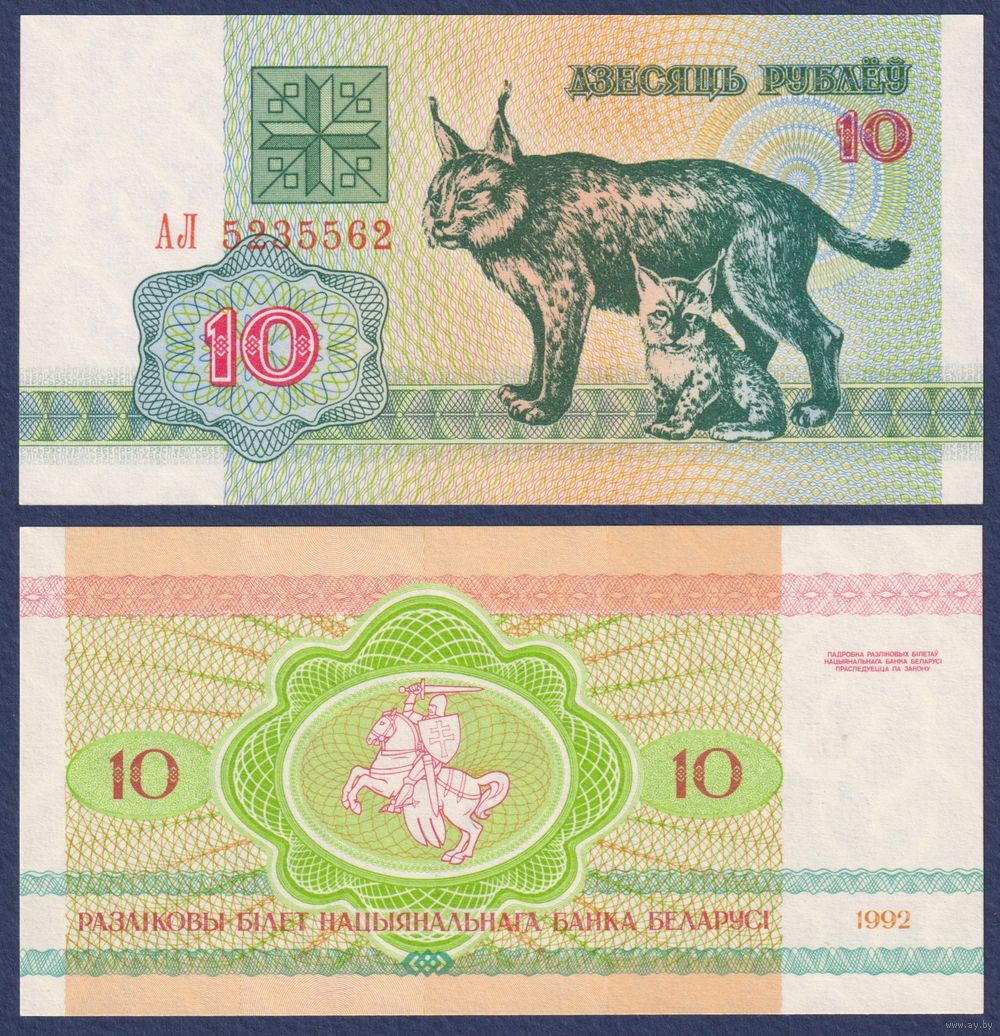 Беларусь, 10 рублей 1992 г, P-5 (серия АЛ, рысь), UNC