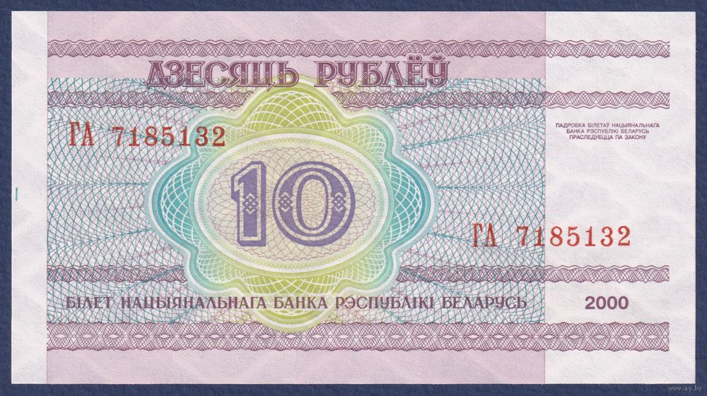 Беларусь, 10 рублей 2000 (2006) г, P-23 (серия ГА), UNC