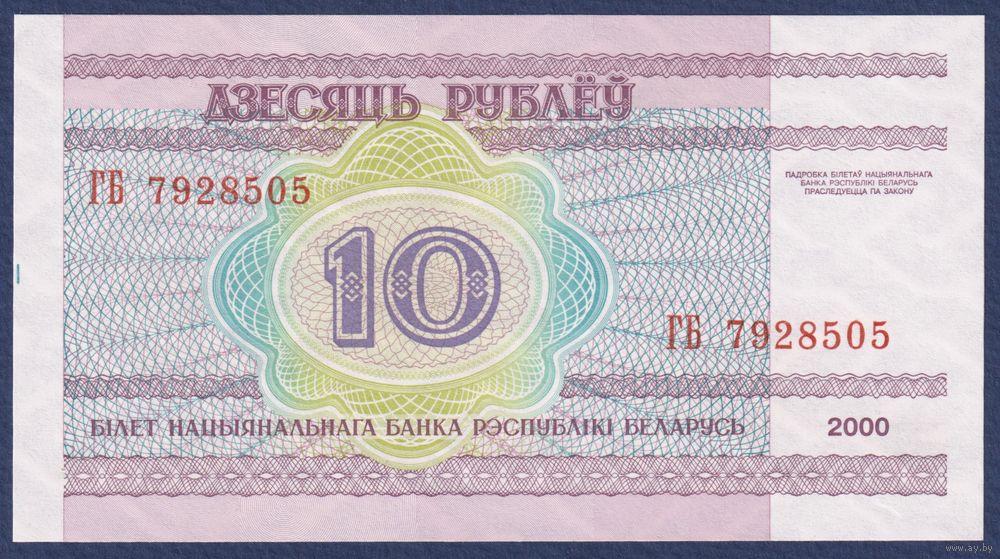 Беларусь, 10 рублей 2000 (2006) г, P-23 (серия ГБ), UNC