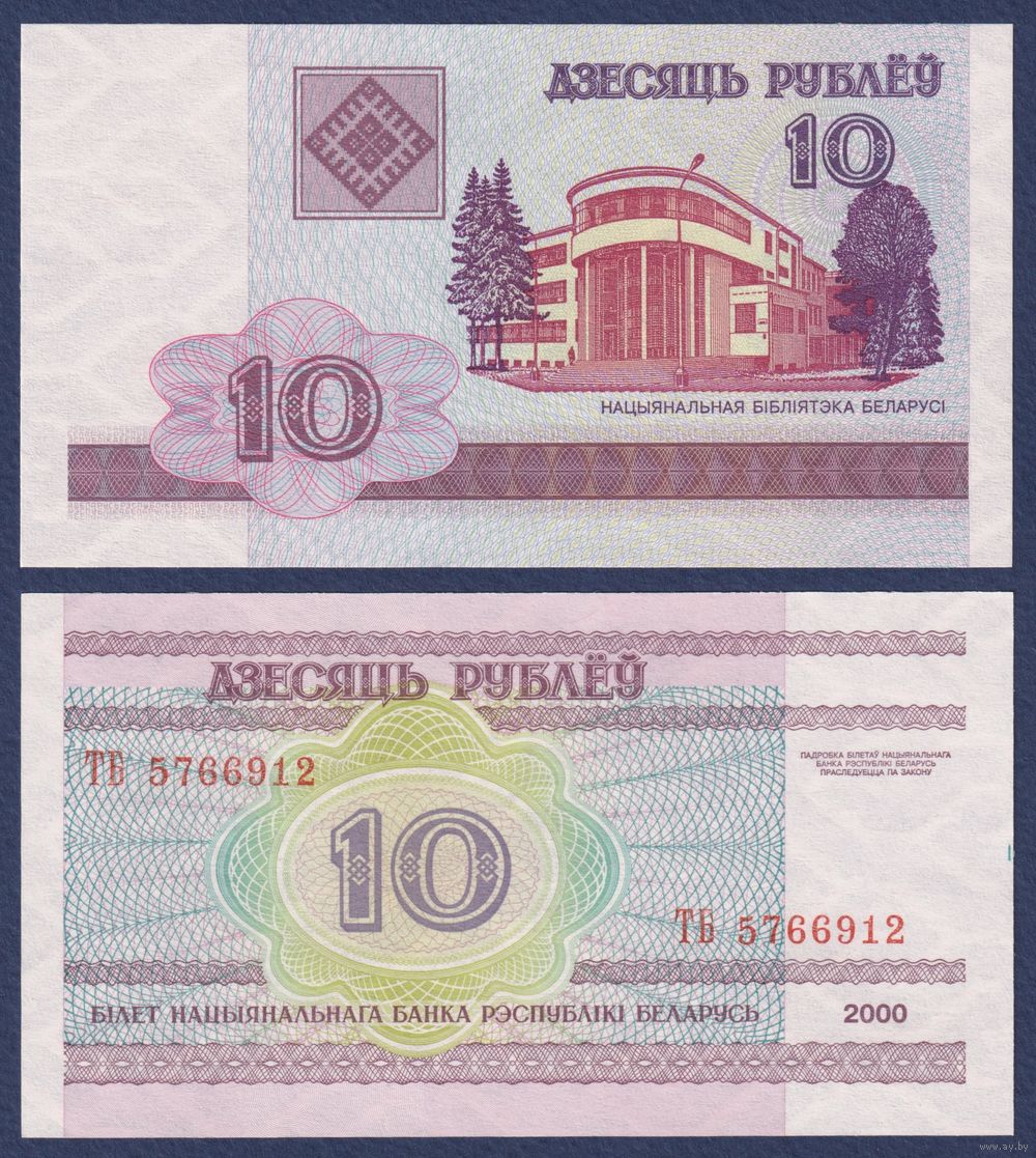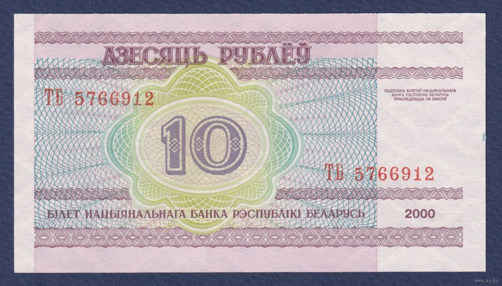 Беларусь, 10 рублей 2000 (2008) г, P-23 (серия ТБ), UNC
