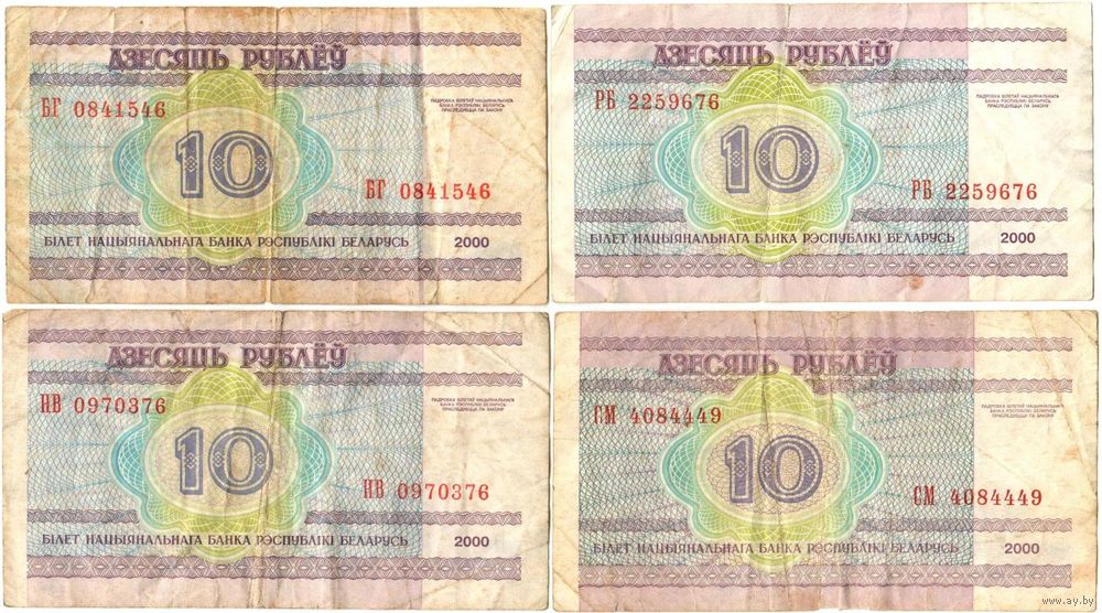 Беларусь 10 рублей 2000 серии БГ, НВ, РБ, СМ - на выбор