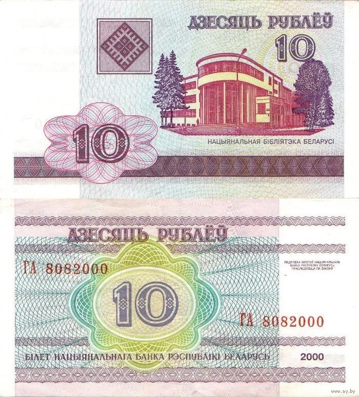 Беларусь 10 рублей 2000 серия ГА (8082000 = 8 августа 2000 г.)