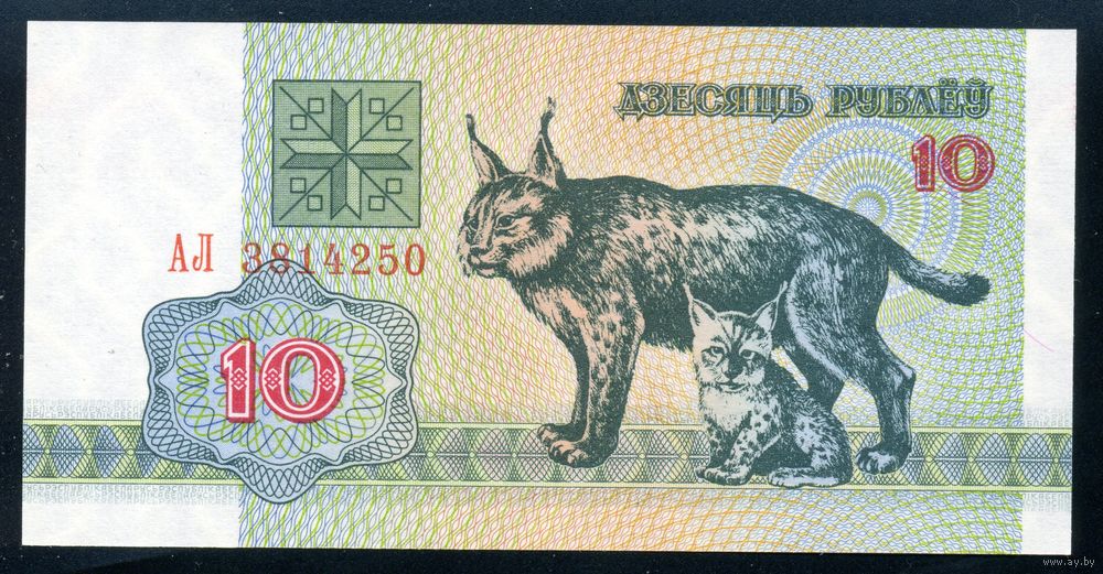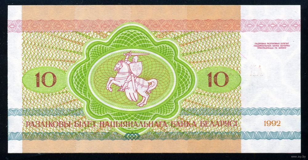Беларусь. 10 рублей образца 1992 года. Серия АЛ. UNC