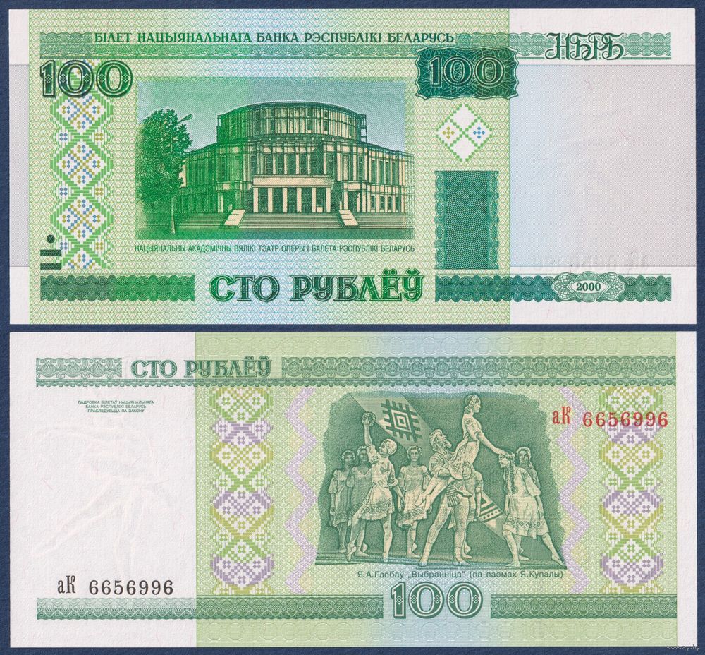 Беларусь, 100 рублей 2000 (2000) г, P-26a (серия аК), UNC