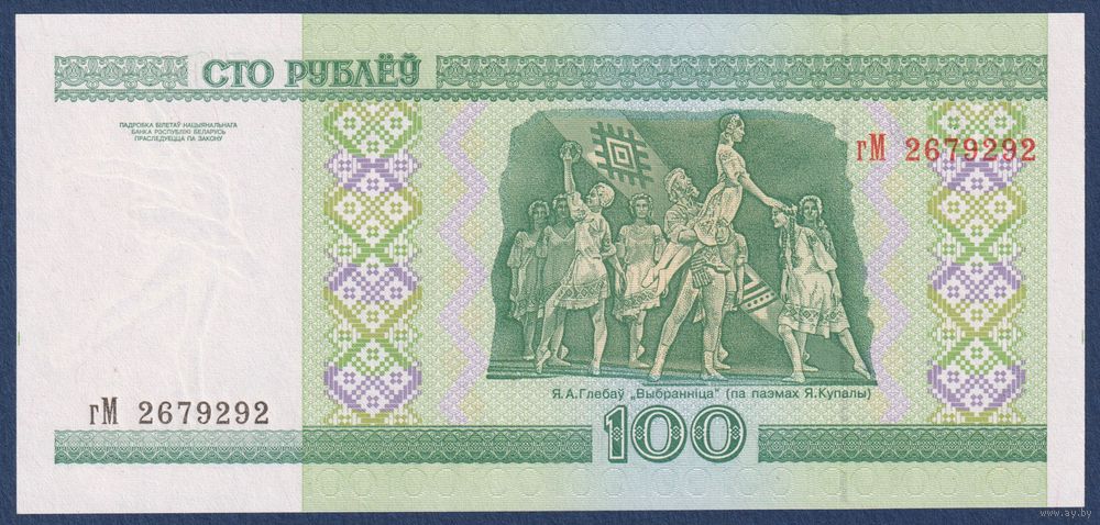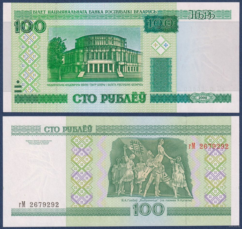 Беларусь, 100 рублей 2000 (2000) г., P-26a (серия гМ, текст св-вн), UNC