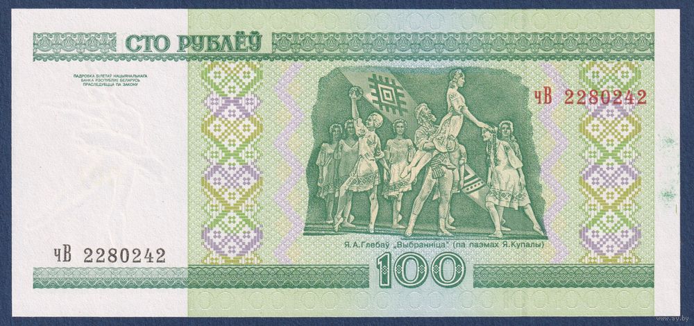 Беларусь, 100 рублей 2000 (2005) г, P-26a (серия чВ), UNC