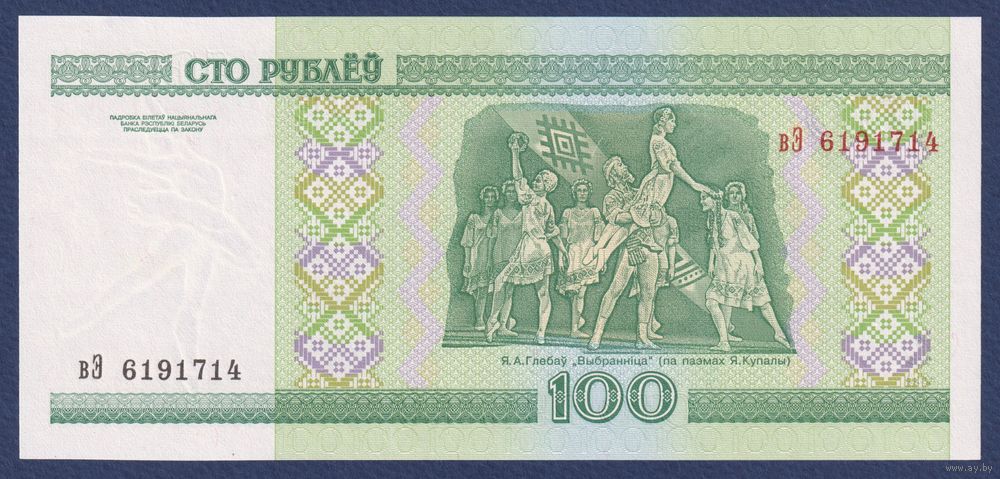 Беларусь, 100 рублей 2000 (2013) г, P-26b (серия вЭ), UNC