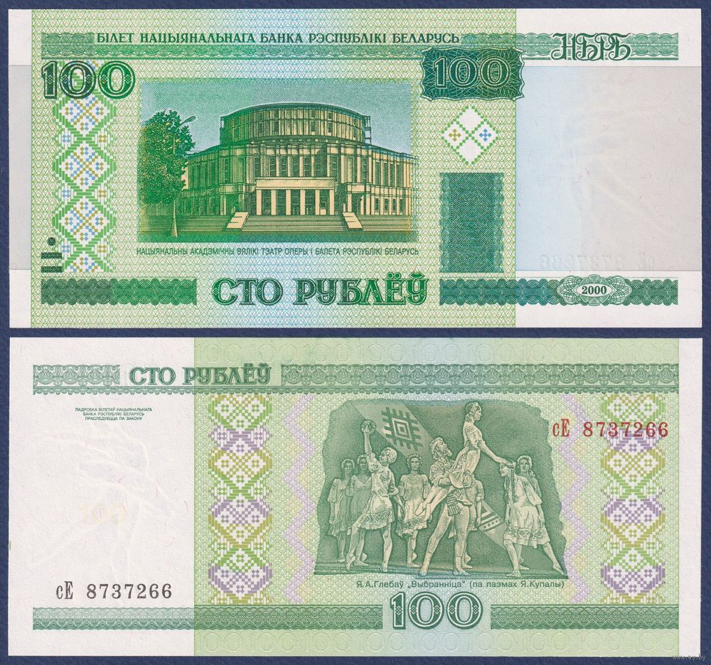 Беларусь, 100 рублей 2000 (2014) г., P-26b (серия сЕ), UNC