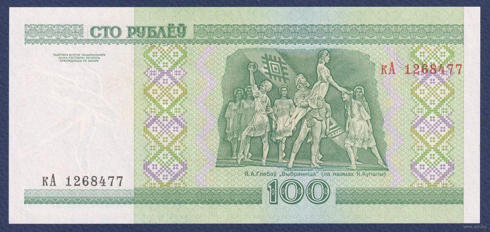 Беларусь, 100 рублей 2000 (2015) г, P-26b (серия кА), UNC