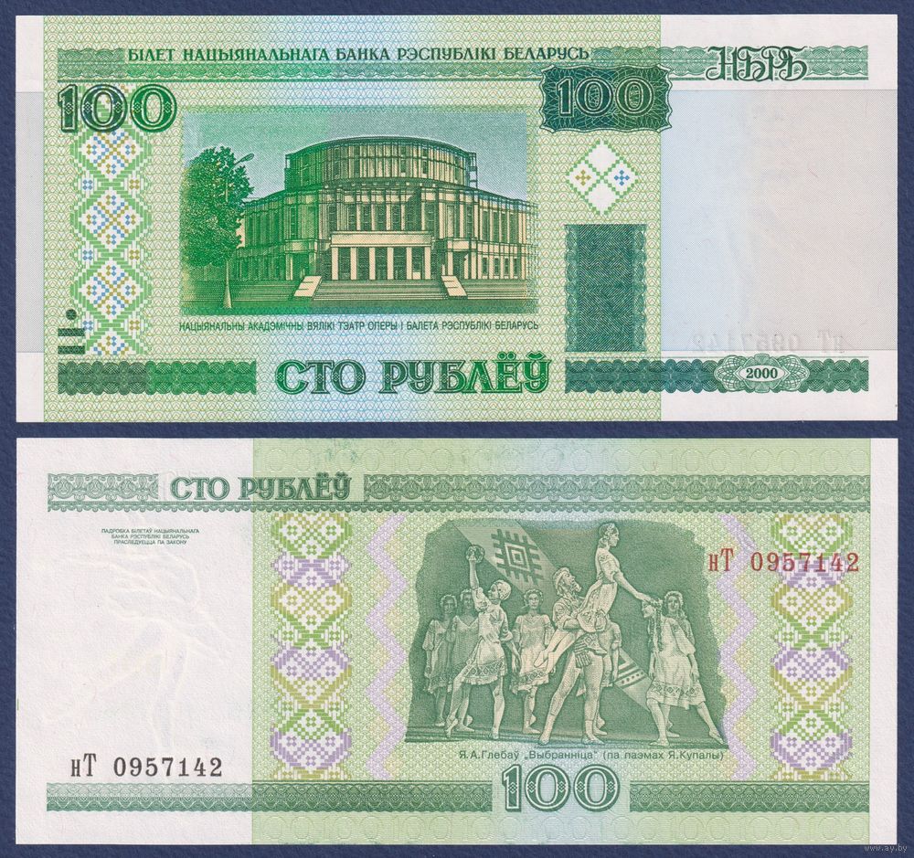 Беларусь, 100 рублей 2000 (2015) г., P-26b (серия нТ), UNC