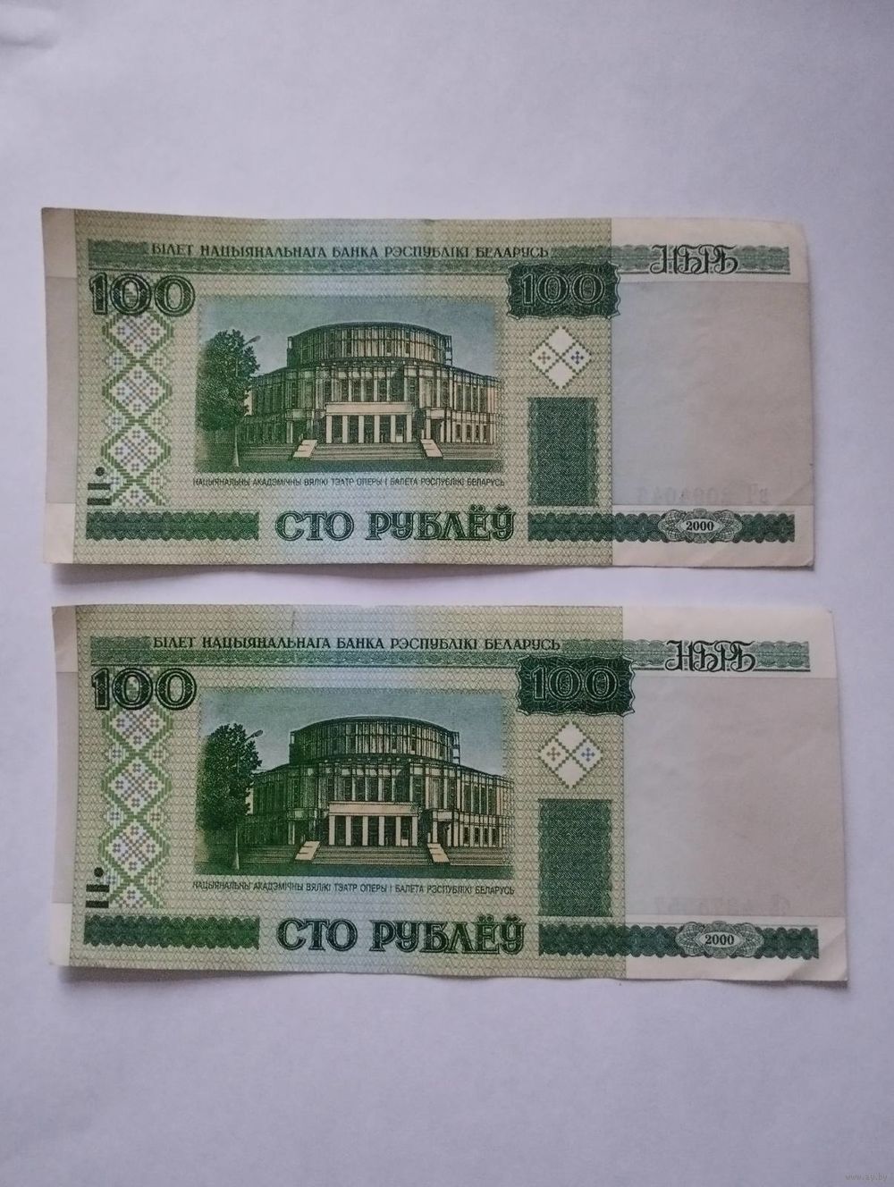 БЕЛАРУСЬ 100 РУБЛЕЙ 2000г., 2 шт., серии бЕ, вЧ