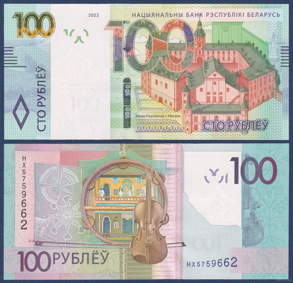 Беларусь, 100 рублей 2022 г., P-41 (серия НХ), UNC