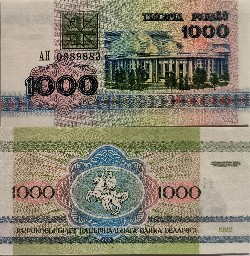 Беларусь 1000 Рублей 1992 "АН" UNC П2-242
