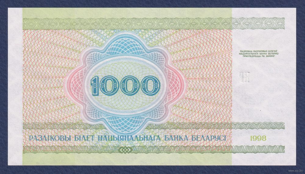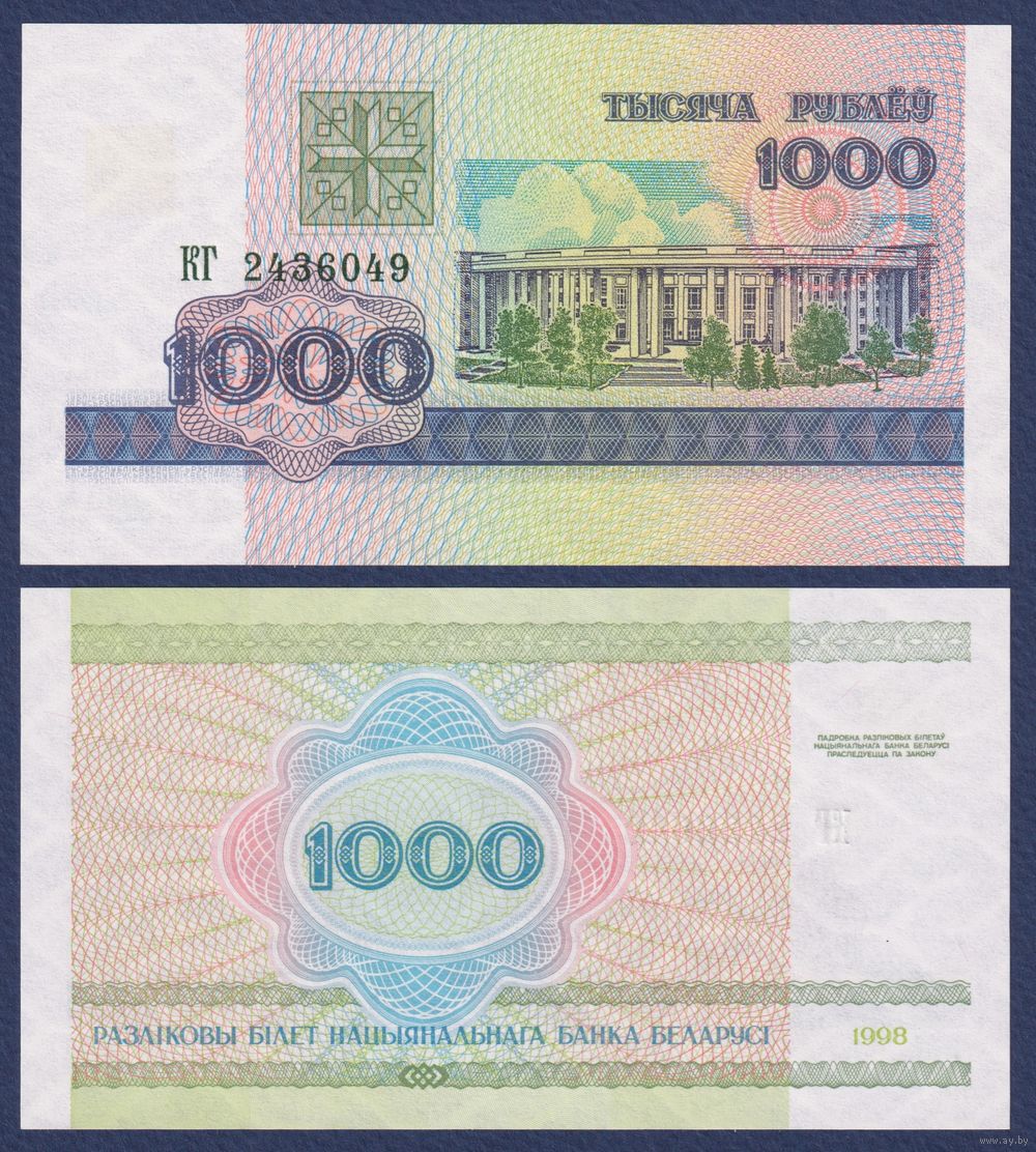 Беларусь, 1000 рублей 1998 г., P-16 (серия КГ), UNC