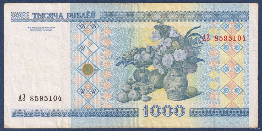 Беларусь, 1000 рублей 2000 (2001) г., P-28a (серия АЗ)