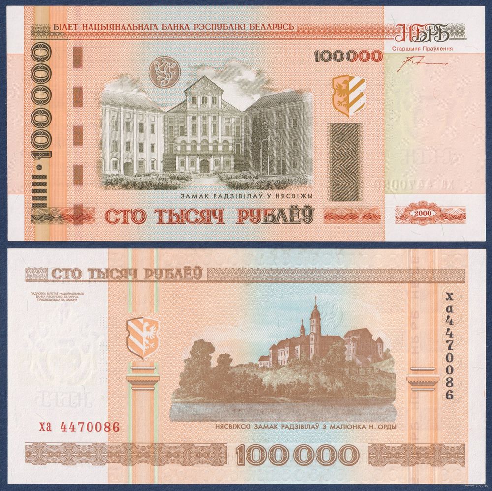 Беларусь, 100000 рублей 2000 (2012) г, P-34a (серия ха), UNC