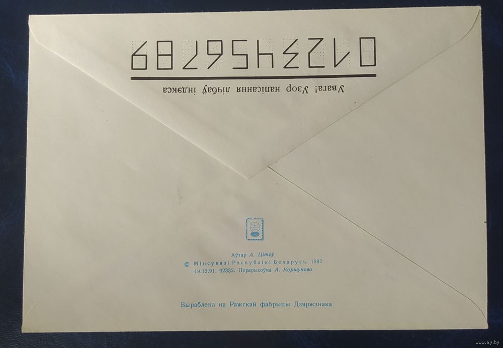 Беларусь 1992 гербы Беларуси, провизорий 2р Минск, цвет карты коричневый.