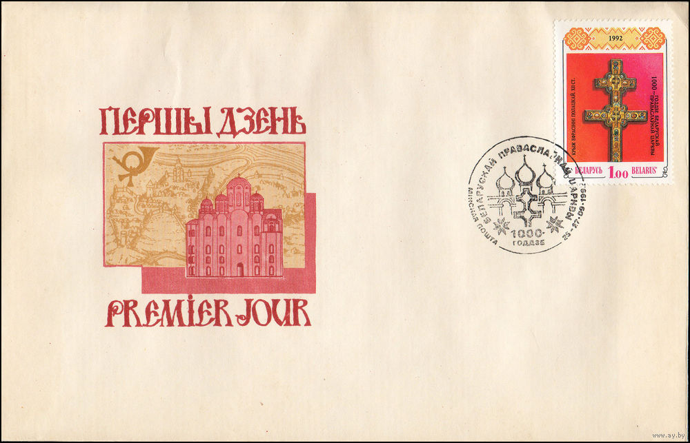 Беларусь 1992 год Конверт первого дня 1000-летие Полоцкой епархии и Православной Церкви на Беларуси