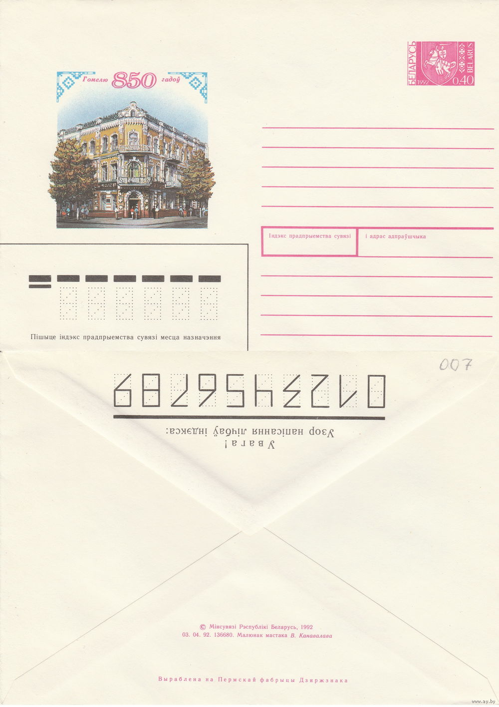 Беларусь 1992 Гомелю 850 гадоў. Гомелю 850 лет (0,40) (к4)