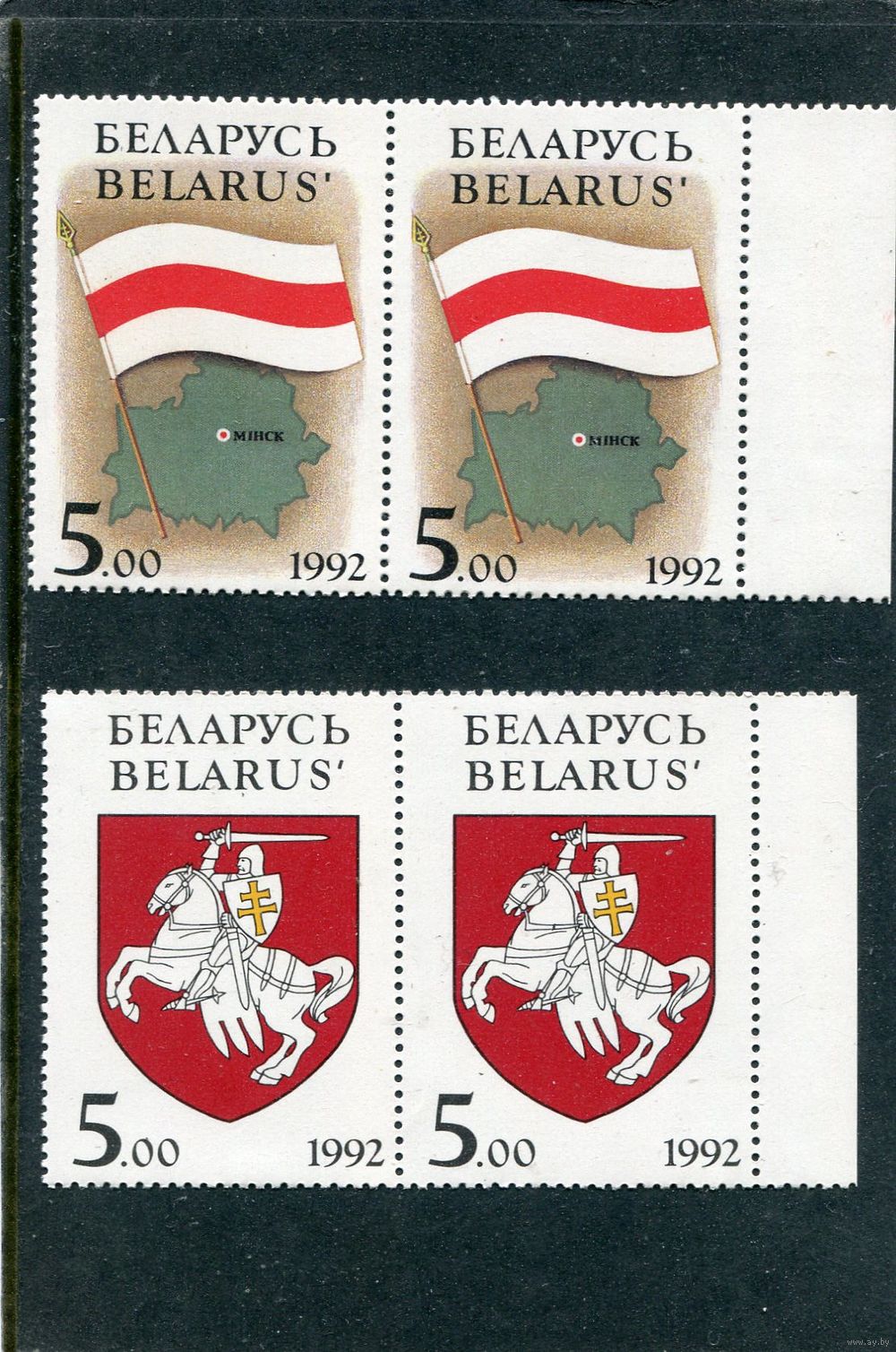 Беларусь 1992. Разновидность. Государственные символы, флаг и герб. Перемычка на середине уздечки (герб, правая марка)