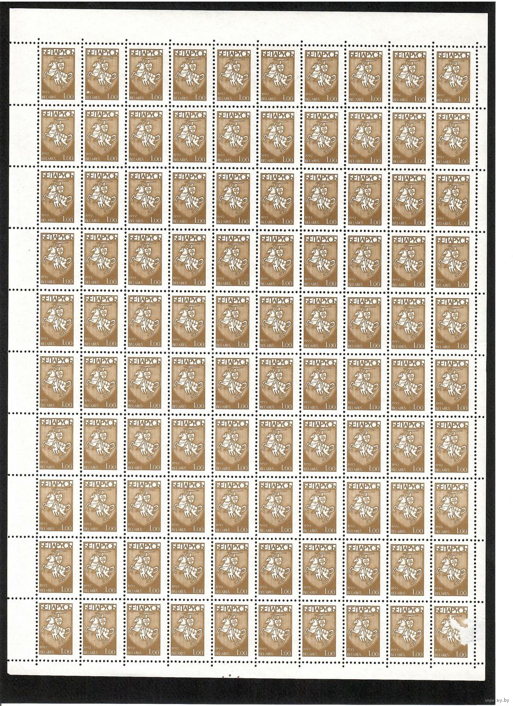 Беларусь. 1993. Первый стандартный выпуск. Погоня (1р). Лист (перфорация слева и справа)