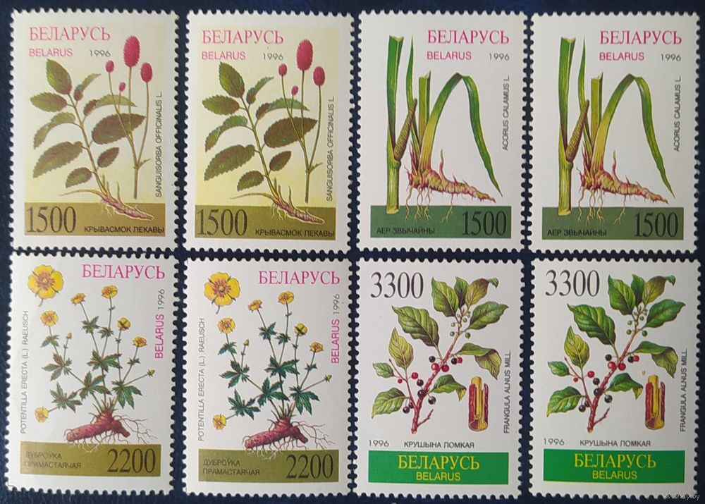 Беларусь 1996 пары с разновидностью цвета, лекарственные растения