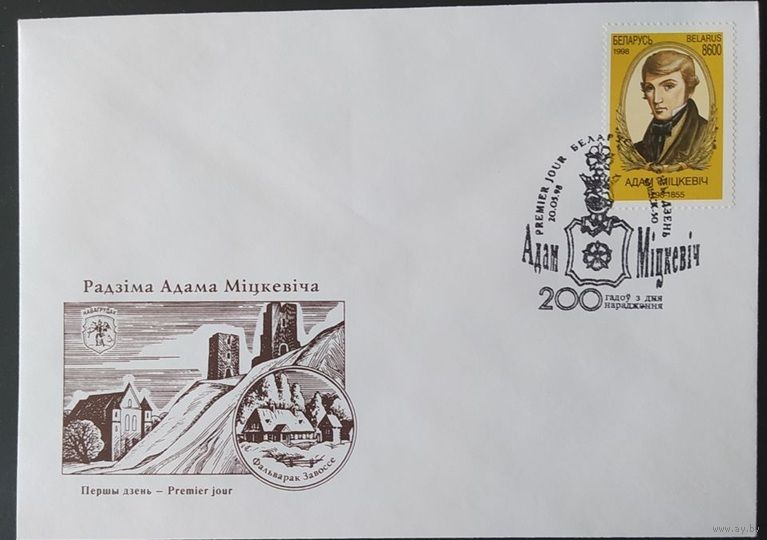 Беларусь 1998 КПД 200лет со дня рождения Адама Мицкевича.