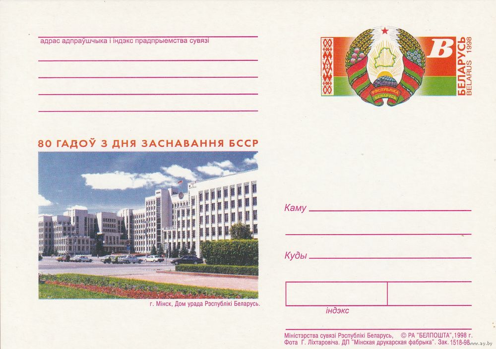 Беларусь 1998 ПК с ОМ 80 лет со дня образования БССР (алб)