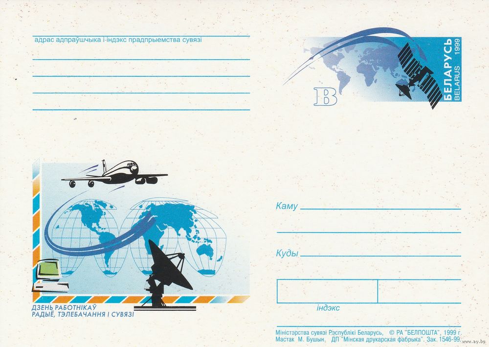 Беларусь 1999 ПК с ОМ День работников радио, телевидения и связи (алб)