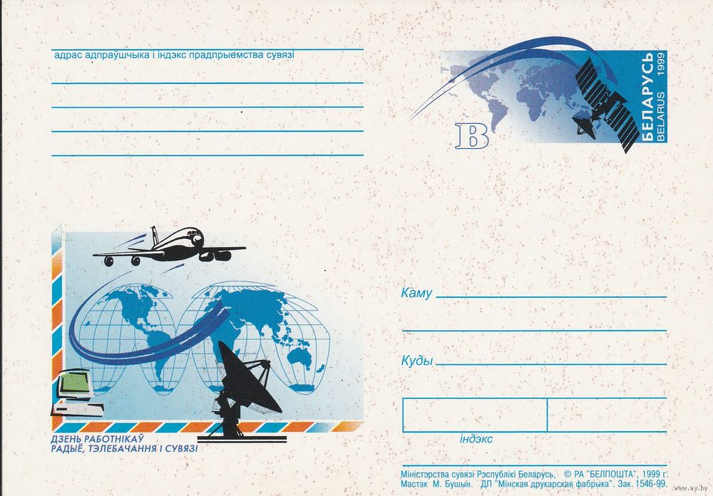 Беларусь 1999 ПК с ОМ День работников радио, телевидения и связи (к5)