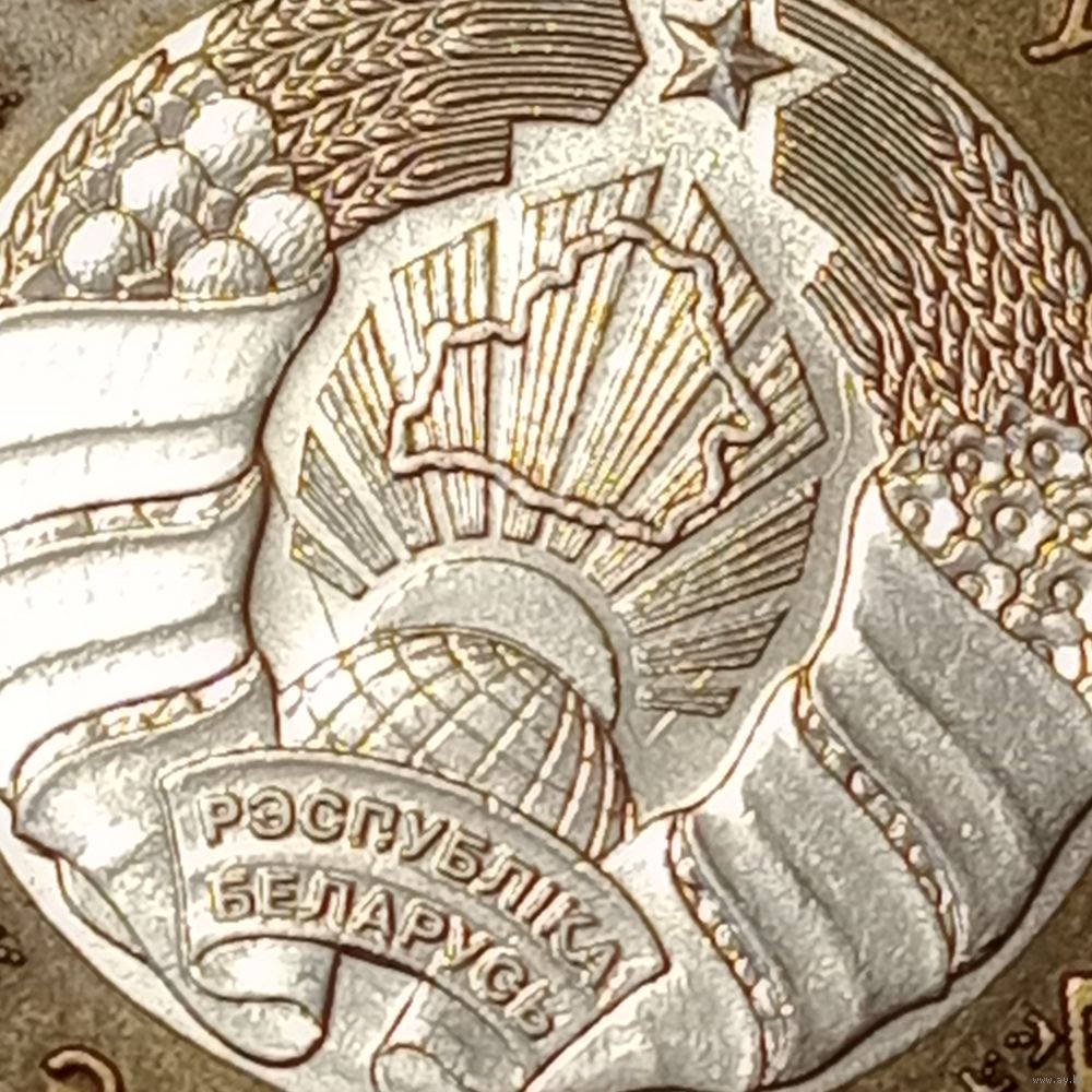 Беларусь 2 рубля 2009 Брак, холостое соударение штемпелей