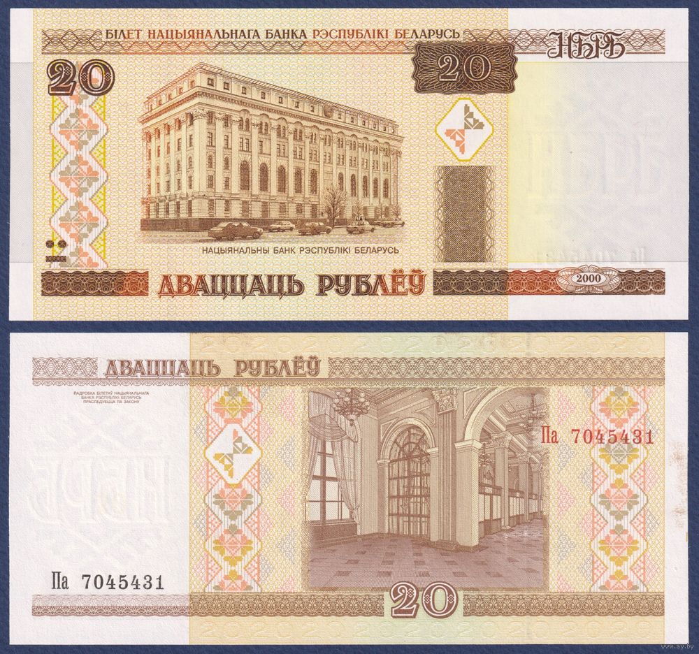 Беларусь, 20 рублей 2000 (2007) г, P-24 (серия Па), UNC