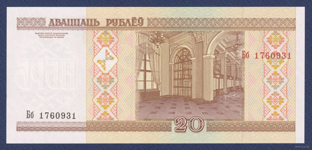 Беларусь, 20 рублей 2000 (2010) г, P-24 (серия Бб), UNC