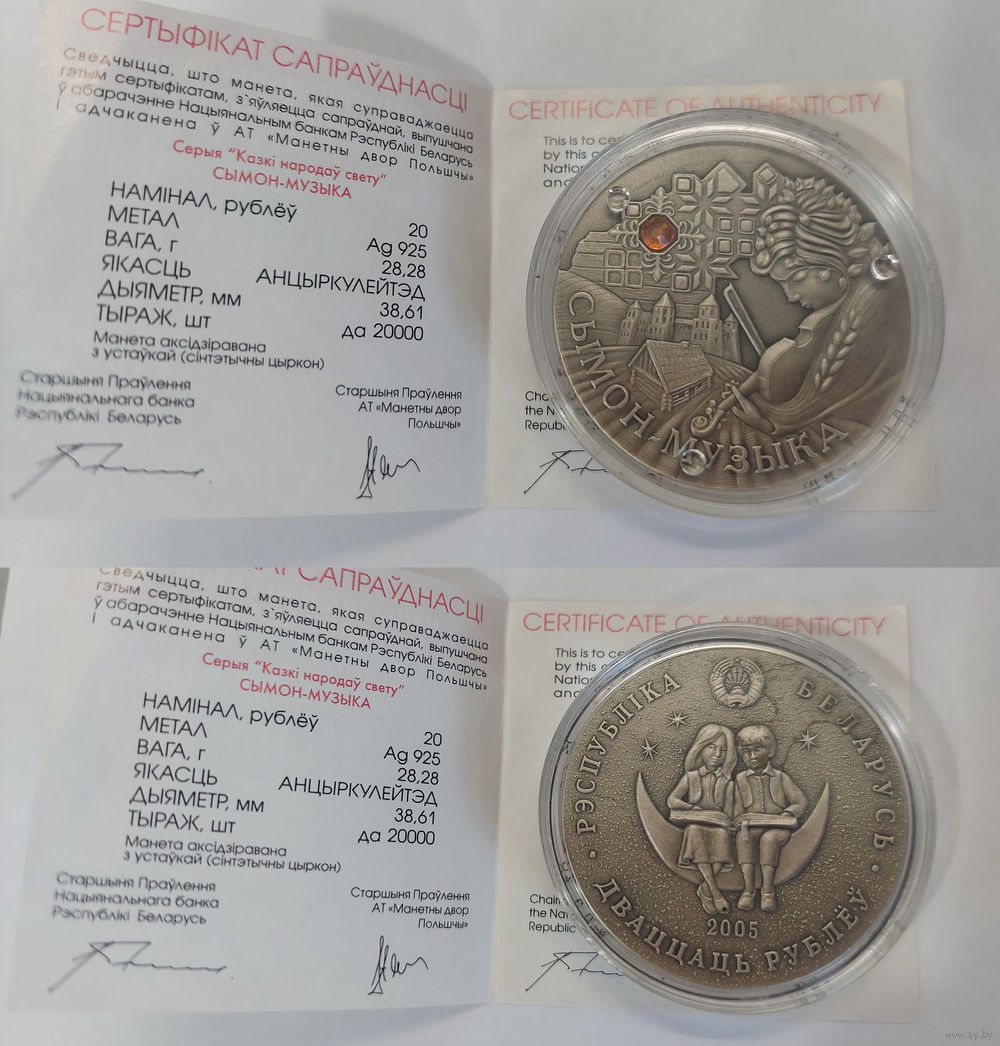 Беларусь 20 рублей, 2005 - Сымон–музыкант