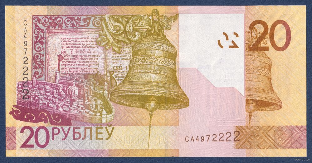 Беларусь, 20 рублей 2009 г, P-39a(2) (серия СА, первая серия, широкие волны), UNC