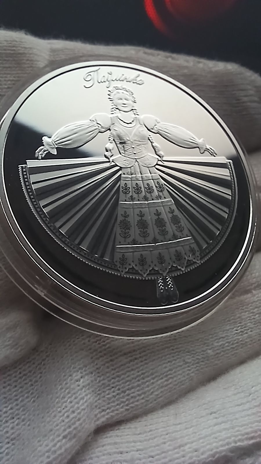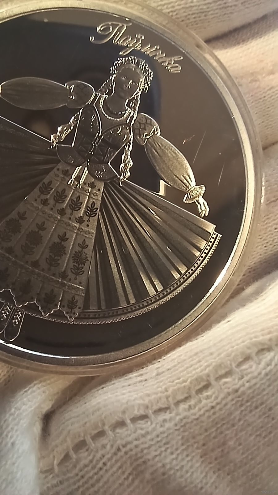 Реверс: в центре – изображение главной героини спектакля "Паўлінка"; вверху – надпись по кругу: Паўлінка.