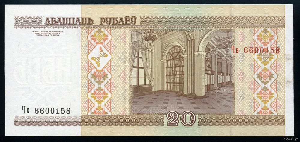 Беларусь. 20 Рублей образца 2000 года, UNC. Серия Чв
