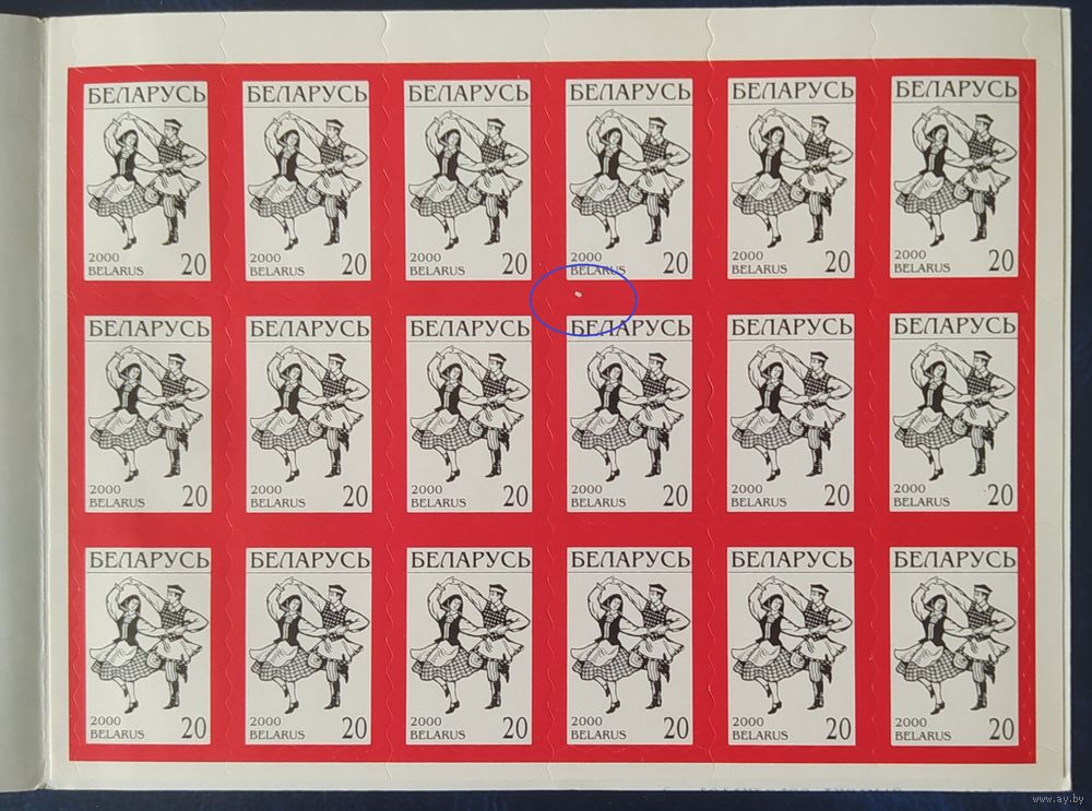Беларусь 2000 Буклет 0.20*(6*3) Крыжачок, Разновидность, с белым пятном на марка в поз.4 (пятно в виде цыпленка).