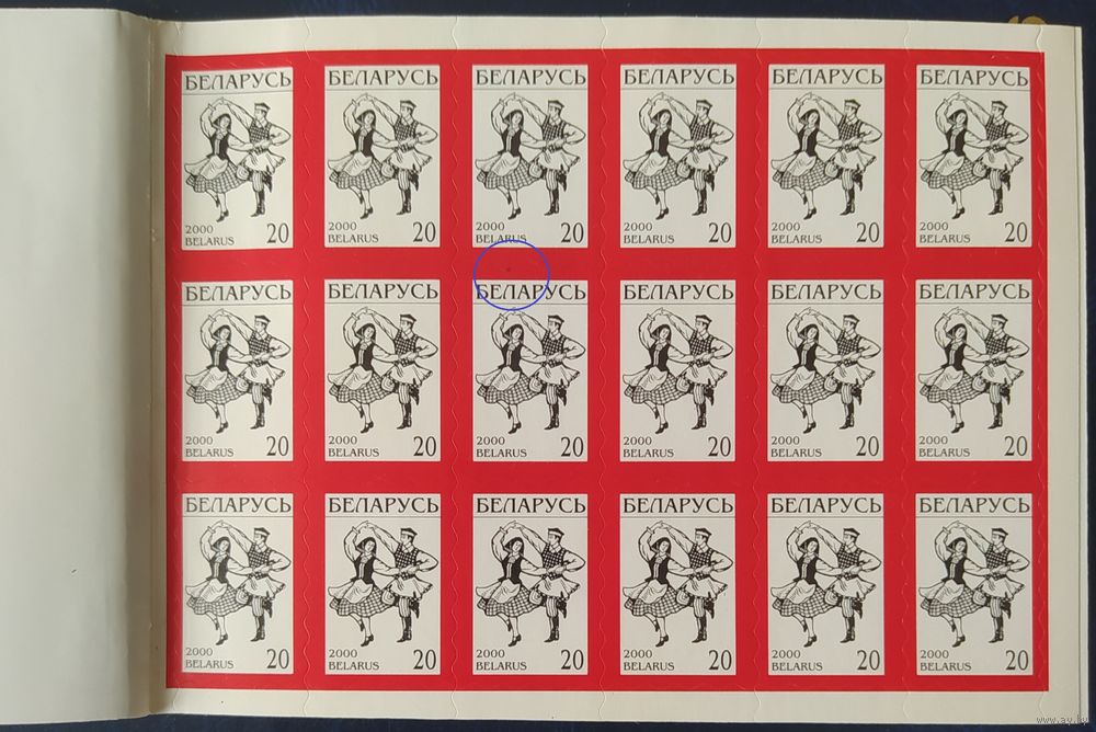 Беларусь 2000 Буклет 0.20*(6*3) Крыжачок, Разновидность, с темным пятном на марка в поз.9 (кольцо) .