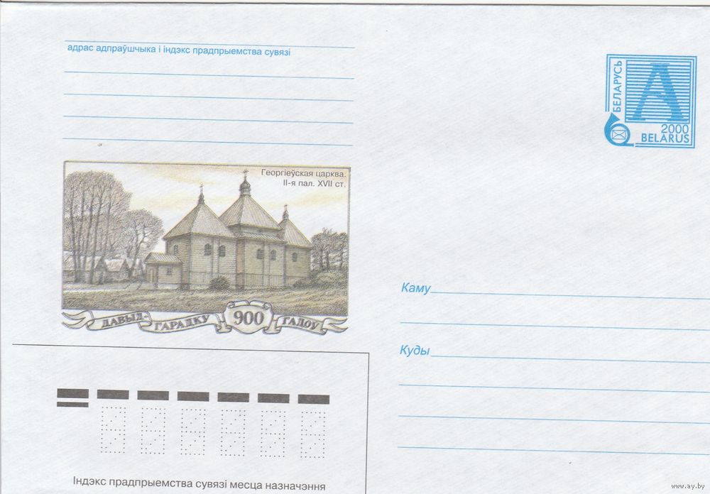 Беларусь 2000 Давыд-Городку 900 лет. Георгиевская церковь. II-я пол. XVII в (к4)