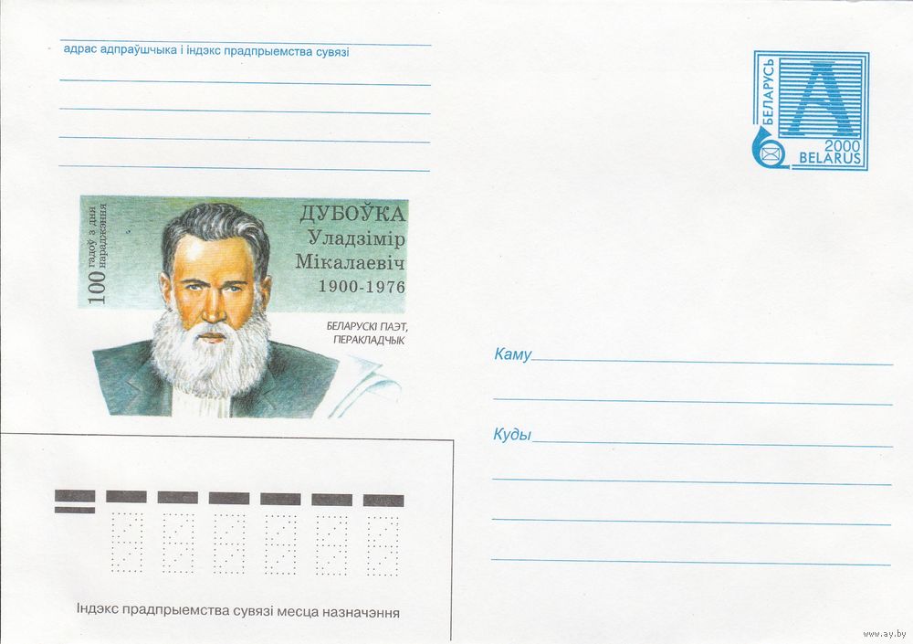 Беларусь 2000 Дубовка Владимир Николаевич 1900-1976. Белорусский поэт, переводчик (к4)