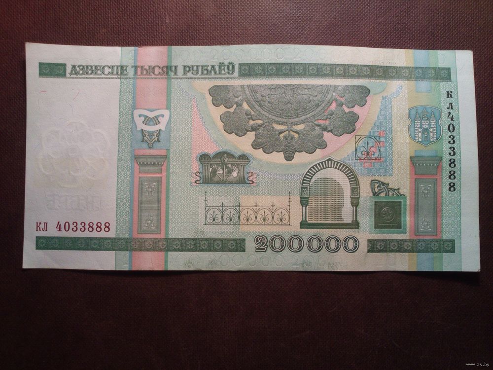 Беларусь 2000 г.200000 рублей.Серия кл 4033888.