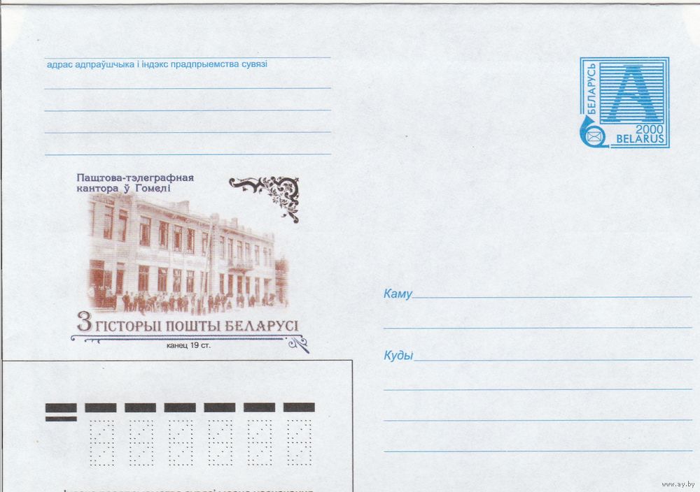 Беларусь 2000 Из истории почты Беларуси. Конец 19 в. Почтово-телеграфная контора в Гомеле (к4а)