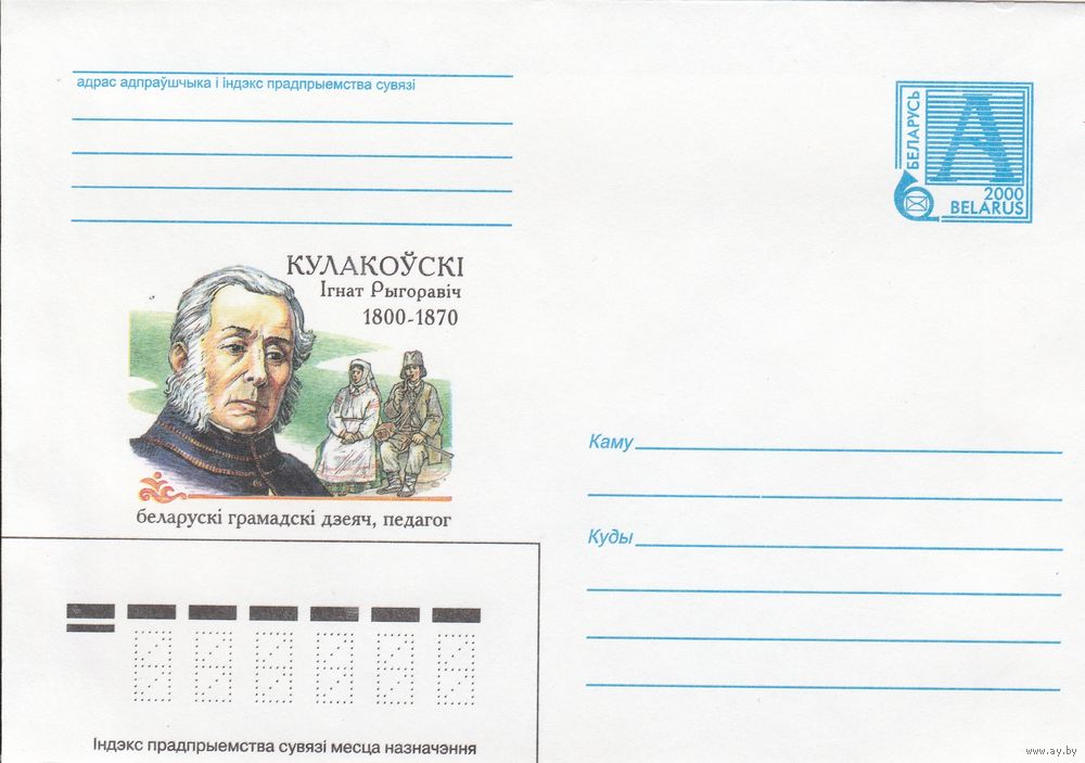 Беларусь 2000 Кулаковский Игнат Григорьевич 1800-1870, белорусский общественный деятель, педагог (к4)
