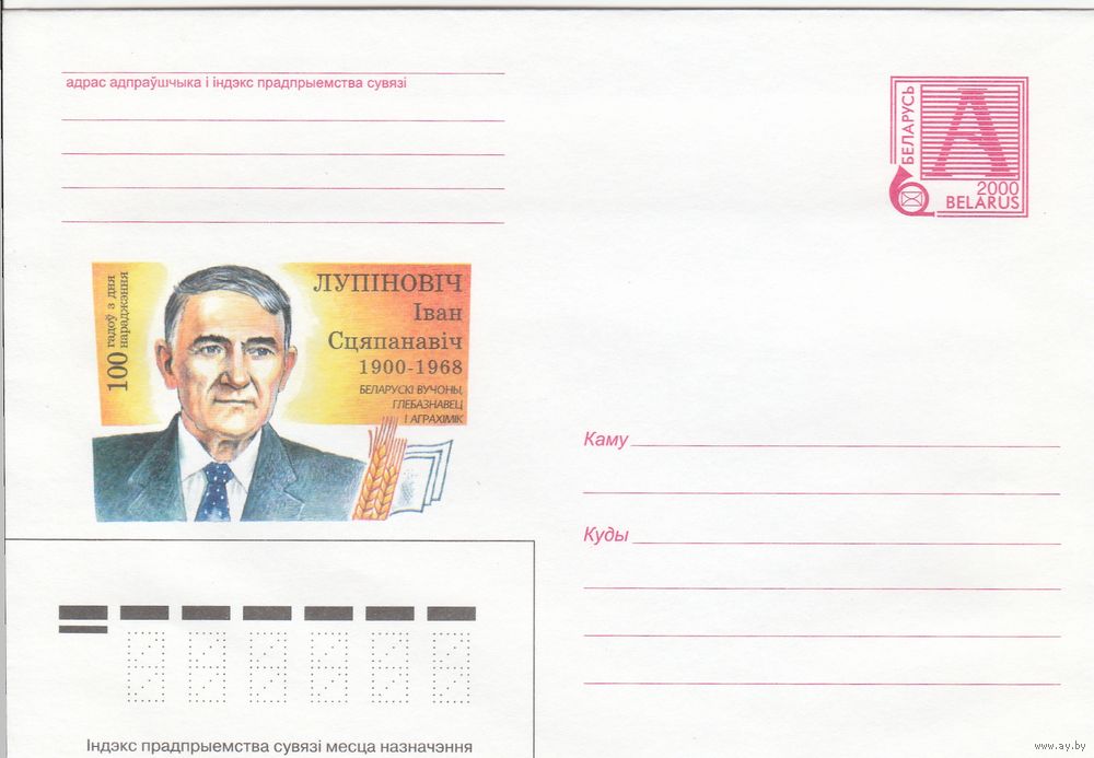Беларусь 2000 Лупинович Иван Степанович 1900-1968. Белорусский ученый, почвовед и агрохимик. 100 лет со дня рождения (к4а)