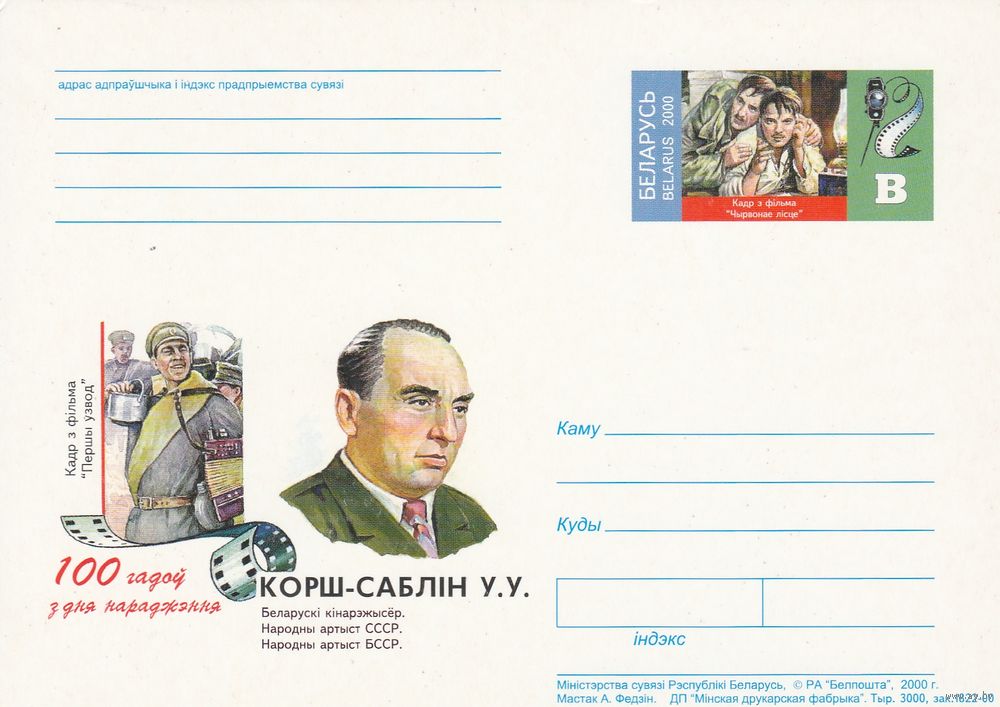Беларусь 2000 ПК с ОМ 100 лет со дня рождения Корш-Саблина В.В. (к5)