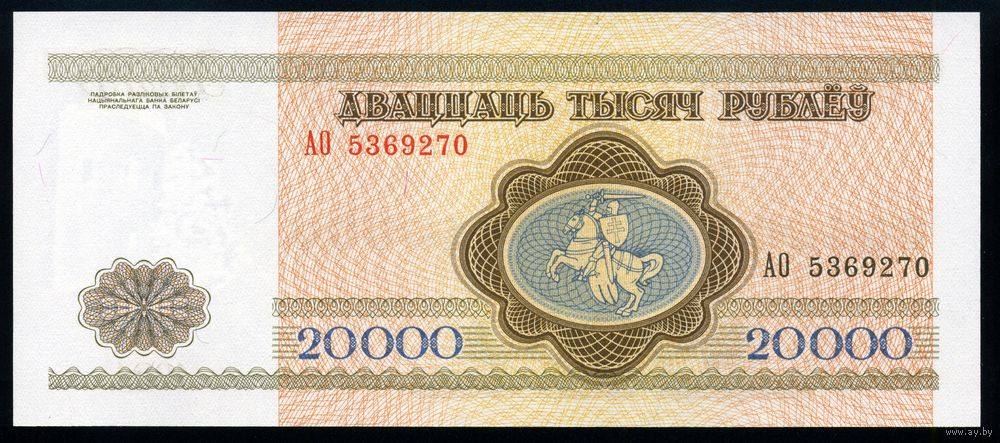 Беларусь. 20000 рублей образца 1994 года. Серия АО. Узкая башня. UNC