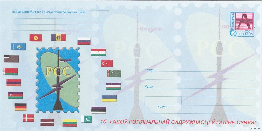 Беларусь 2001 10 лет Региональному Содружеству в области связи эмблема РСС (к4а)